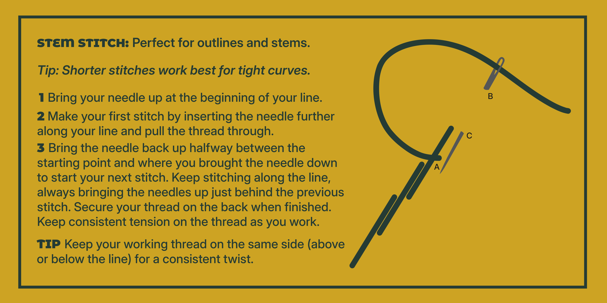 Explore our growing library of illustrated stitch diagrams and written step-by-step instructions for a variety of embroidery techniques. Whether you are just starting out or looking to expand your skills, this guide is here to help you stitch with confidence. Check back often—we’ll be adding new stitches and techniques over time!