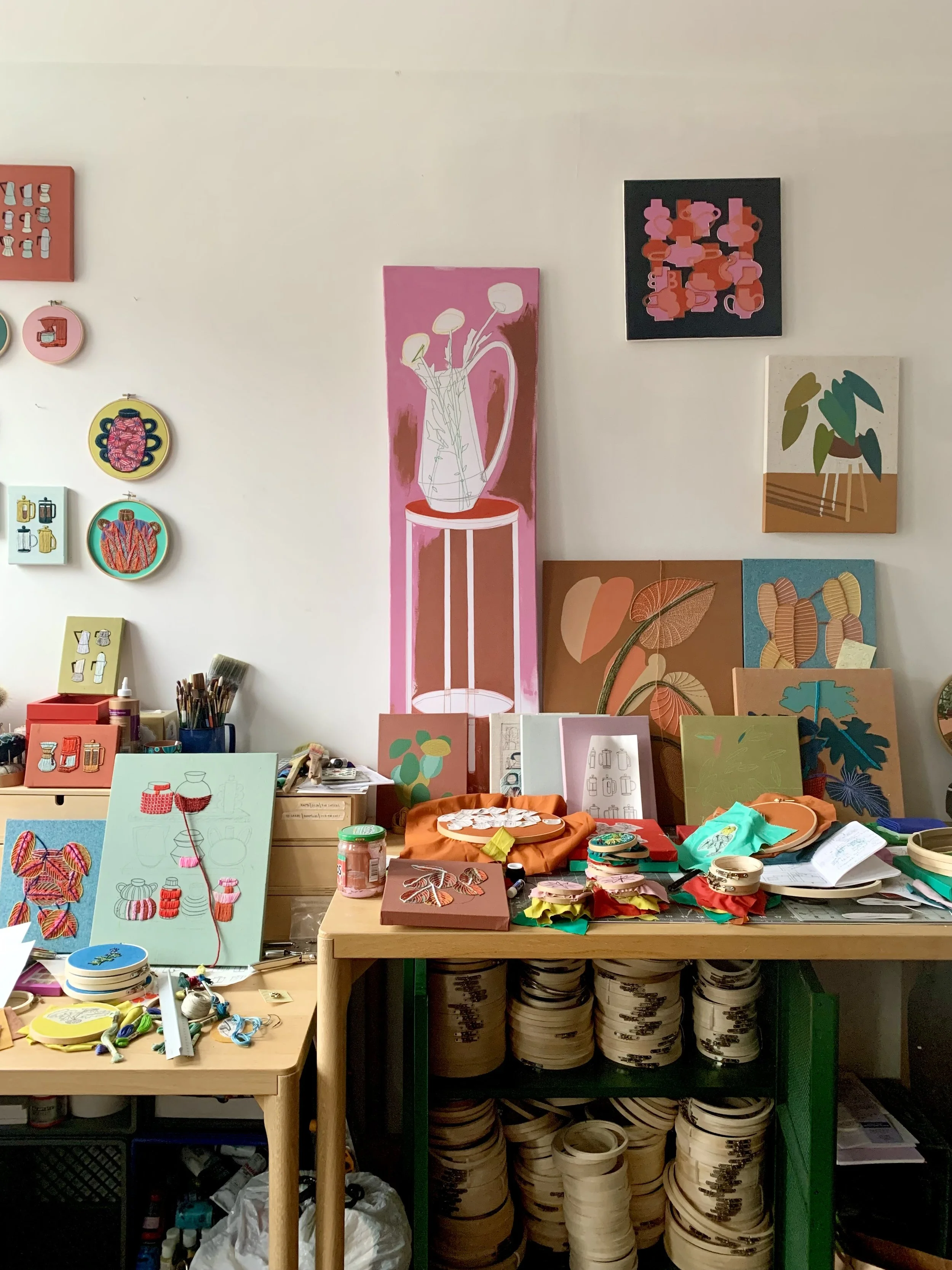 Sarah discovered her passion for embroidery back in 2013. After leaving art school (with a BFA from the School of the Art Institute of Chicago), Sarah turned to embroidery as a creative outlet while she worked full-time as a nanny. What started as a hobby quickly transformed into a bit of an obsession and then into a career as Sarah developed her bold embroidery aesthetic full of botanical imagery, strong black outlines, and intense detail.